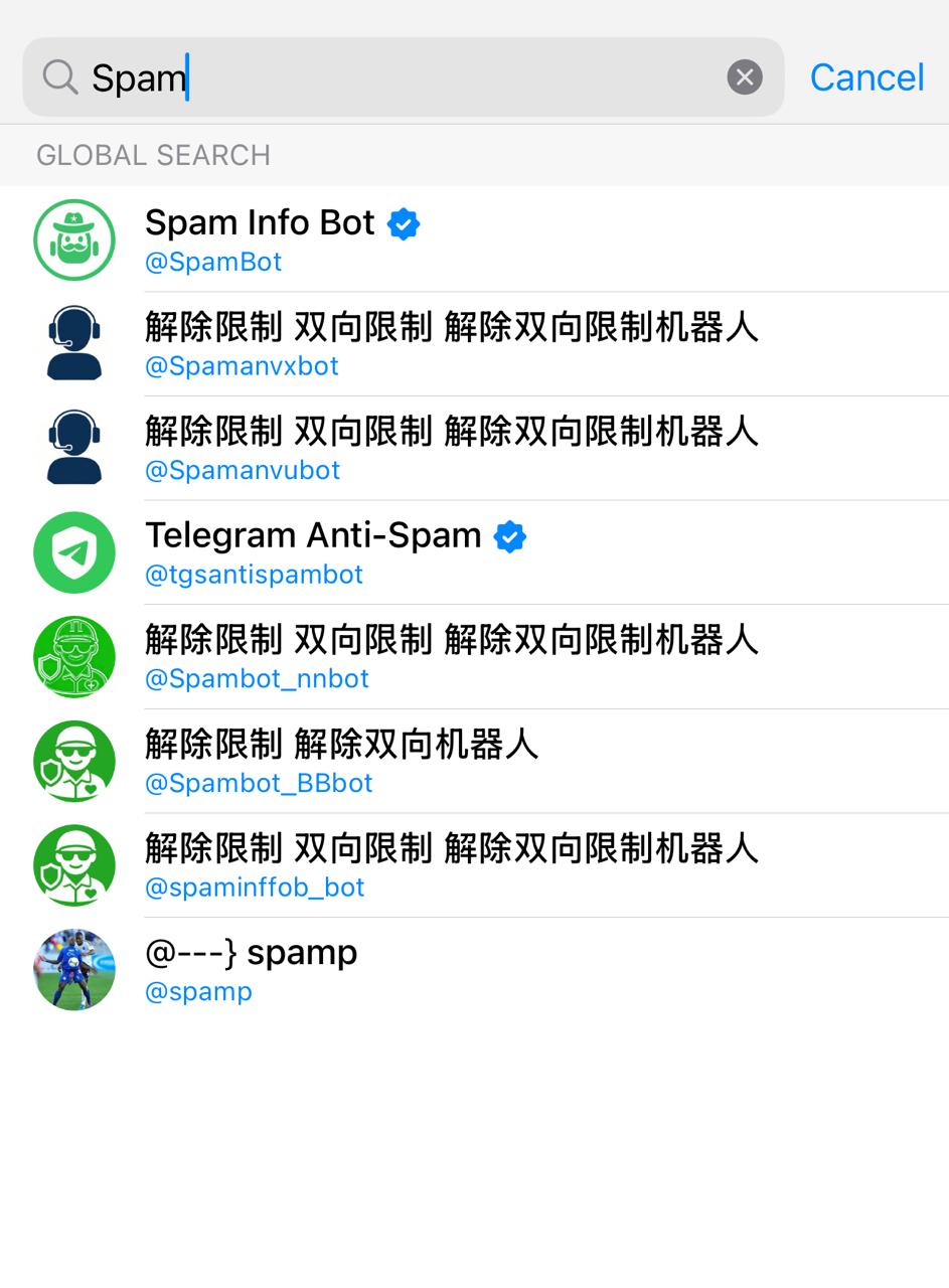 Step 1: Open Telegram, use the search field, and locate the Spam Info Bot to begin reviewing your current account messaging status.