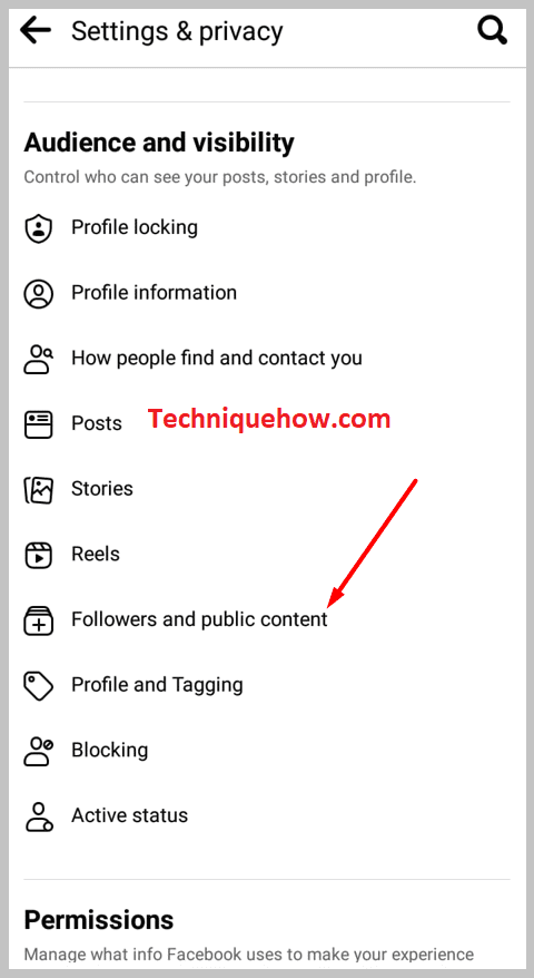 📲 On the Settings & privacy page, click on ‘Followers and public content’.