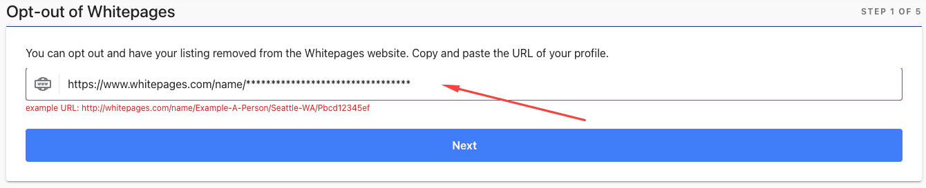 After copying your profile link, go to the official Whitepages opt-out or suppression page. This page is specifically designed for users who want their personal information removed from public search results. On the form, you will be asked to paste the URL of your listing into the required field.
