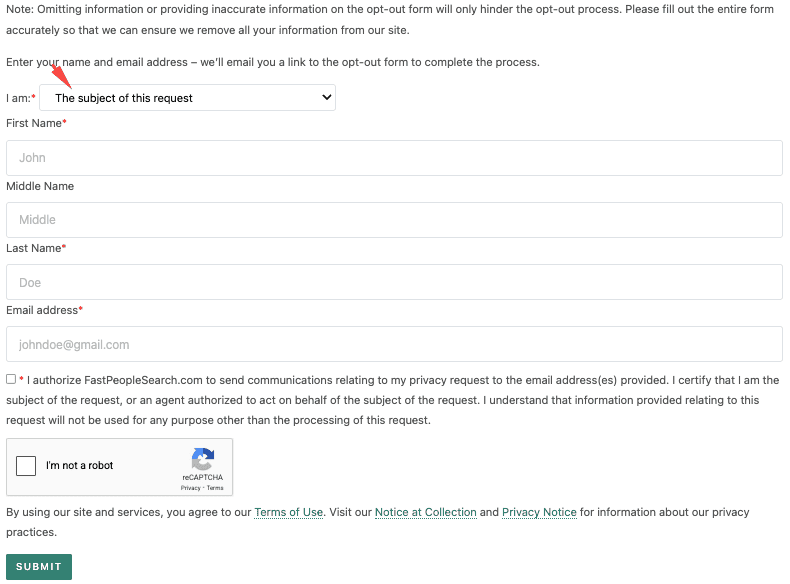 Now, you need to go to the FastPeopleSearch opt-out page, which is specifically designed for privacy removal requests. This page is designed specifically for privacy requests.