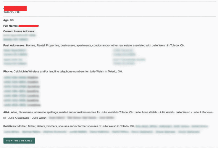 Once you find your profile, click on the “View Free Details” option to open the full record. This step helps you confirm exactly what information is publicly visible before submitting a removal request. After opening your profile through “View Free Details,” review the page carefully and confirm that it contains your correct information. Check details such as your name, address history, phone numbers, and associated relatives. You may need some of this information later when submitting the removal request, so keep the page open or make a note of the important details.