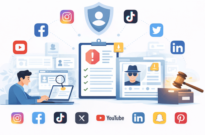 Remove fake or impersonating social-media profiles fast. TechniqueHow locates offending accounts across platforms (Instagram, Facebook, TikTok, X, YouTube, LinkedIn, Snapchat, Reddit, and more), compiles platform-ready evidence, files takedown reports, and follows up until the content is removed.