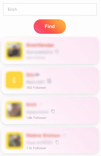Step 3: Click the Find button and wait while the tool searches for matching Snapchat users automatically, and view the list showing usernames, profile pictures, and details to identify the correct person easily.