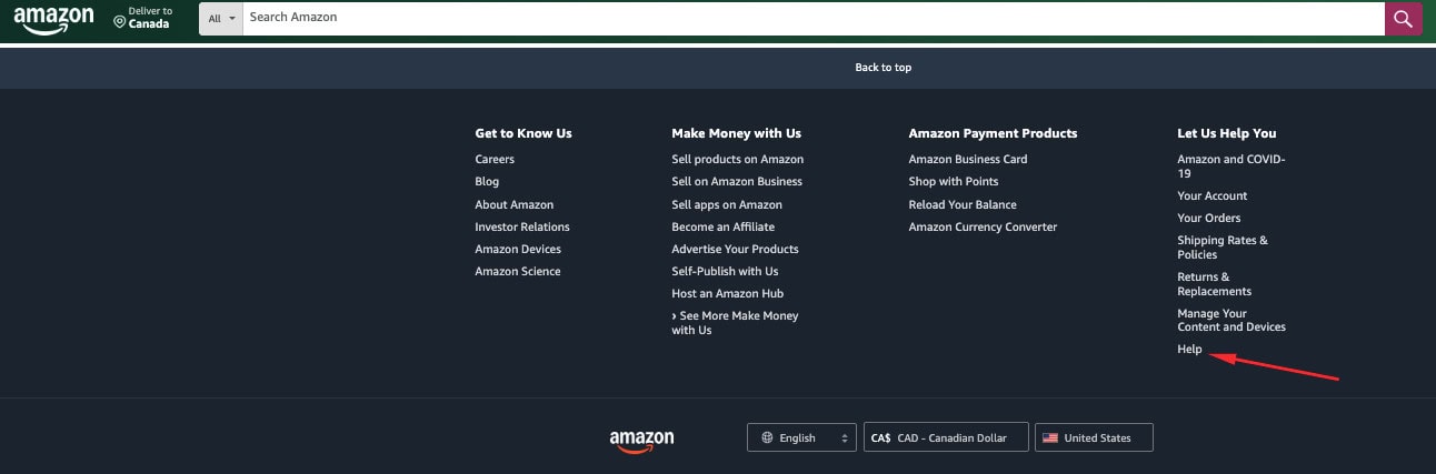 Step 1: First of all, sign in to the Amazon account where the gift card balance currently exists and open the Help section (from the left menu or in the bottom footer options).