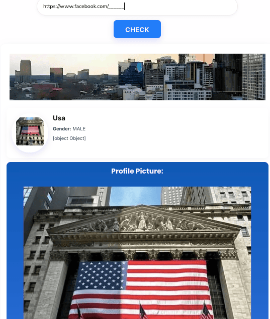 - You can enter a Facebook username, profile link, or numeric ID into the tool input and click on the ‘Check Profile’ button.